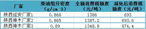 表1 陕西煤焦油加氢厂家预估柴油组分消费税征收额度表