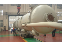 未来的化工规划将是大规模、成套化、智能化、一体化的大型项目,我们化工设备制造企业从研发、设计、制造、安装、检修到售后服务为一体的一条龙交钥匙工程,是大势所趋。目前我国重大石化装备制造能力不足,部分关键石化设备仍依靠进口。所以我们在2011年二期厂房刚投入使用,就开始了三期重工厂区的建设,目前已投入正常使用。目前已经承揽了很多石化方面的大重型设备。比如,石油化工方面的加氢反应器、循环氢脱硫塔、热高分、冷高分、吸收塔;煤化工方面的第一变换炉、锁斗、合成气洗涤塔等关键设备。其中己内酰胺催化剂项目中的环己醇第一、二反应器,丁辛醇项目中的1、2号羰基合成反应器等的市场占有率已达到80%以上。特别值得一提的是,我公司2012年与中石油合作的六台536吨吸收塔制造项目,是现任国家主席习近平亲自参加投产仪式、前国家主席胡锦涛亲自签订的“中国-土库曼斯坦两国天然气合作总协议”中的核心设备,是我国迄今为止整体出口重量最大的天然气设备。吸收塔全长35.2米,直径3.68米,壁厚4+138mm不锈钢复合钢板,是国内生产同类设备采用复合板技术的首例,同时也攻克了厚壁容器异种钢焊接难题。