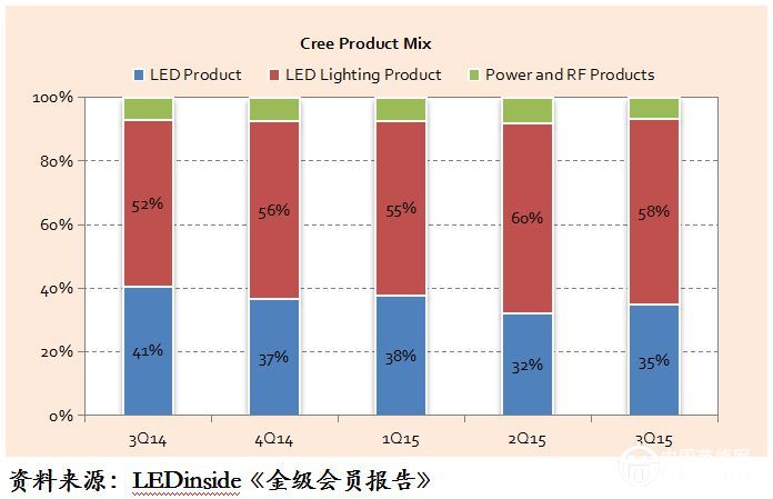 实际上,现在的CREE已经不再适合定位为LED公司,而是一家十足的照明公司,最近几个季度的表现来看,CREE的lighting产品已经超过公司营收规模的50%了。而在北美市场,CREE的已经晋升到了第三大照明厂商。