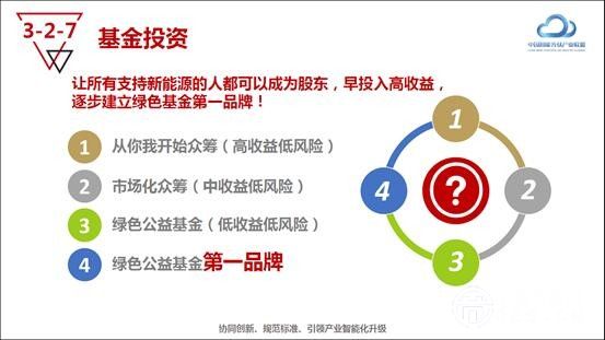 通过“绿衫资本”+“智能宝”互联网+众筹的第三方金融服务平台,真正打通产业、金融和用户。让所有支持新能源的人都可以成为股东,早投入高收益,逐步建立绿色基金第一品牌!
