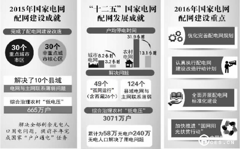 1月28日,记者从国家电网公司2016年发展工作会议了解到,2016年国家电网公司将进一步加强配电网规划建设,全面提高供电可靠性。2016年,国家电网公司经营范围内城网、农网客户平均停电时间将不超过3.1小时、12.7小时,同比缩短0.1小时、0.4小时。