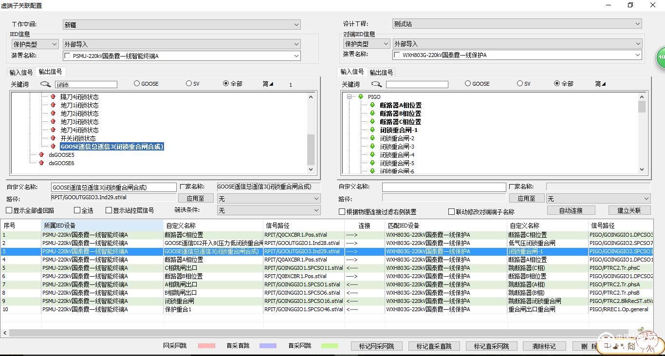 2016年元旦刚过没多久的一天下午,新疆省院的谈工给山东容弗的技术支持人员打电话反映厂家出的SCD文件签入到“智能变电站设计系统2.0”上的时候就会出现从国泰霞一/二线智能终端装置的“闭锁重合闸合成”信号到国泰霞一/二线保护装置的“闭锁重合闸”信号缺失的现象,当时山东容弗的技术人员正在从太原前往银川的火车上,顾不上旅途的劳累,技术人员马上记录了用户反映的使用问题并接收用户发来的SCD文件资料。为了避免问题的拖延给用户带来进一步的不便,技术人员在第一时间先向公司的研发人员进行了反馈。