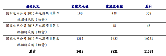 2016 年,国网预计投入 50 亿元,分三批招标充换电设备,在第一批招标中 全部为直流充电桩设备,共计 6624 套,是 2015 年第一次招标 538 套的 12 倍!