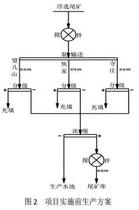 焦家金矿隶属山东黄金集团有限公司,30多年来,经过若干次技术改造和新选矿厂建设,生产规模由原来日处理矿量500吨发展成为日处理矿量10000吨、年产黄金22万两,集采矿、选矿为一体的大规模现代化黄金矿山。焦家金矿选矿厂生产工艺流程分为:碎矿工艺、磨浮工艺、排尾工艺三部分。尾矿输送方面,浮选作业所得尾矿先用泵输送至焦家、望儿山、寺庄三矿区充填站,经充填站旋流器分级后,粗颗粒沉砂用于井下充填,细颗粒溢流返回至选矿厂53米浓密机;浓缩矿浆利用油隔离泥浆泵输送至距选矿厂7.5公里的尾矿库储存,浓密机溢流回水返回循环利用。在现有生产模式下,向各矿区充填站以及尾矿库输送矿浆浓度较低,矿浆中部分细颗粒矿物和大量水分存在来回倒运现象,电耗浪费明显。同时,大量生产用水进入尾矿库外排,选矿用水负担较重,外排水对尾矿库周围环境也产生了一定影响。