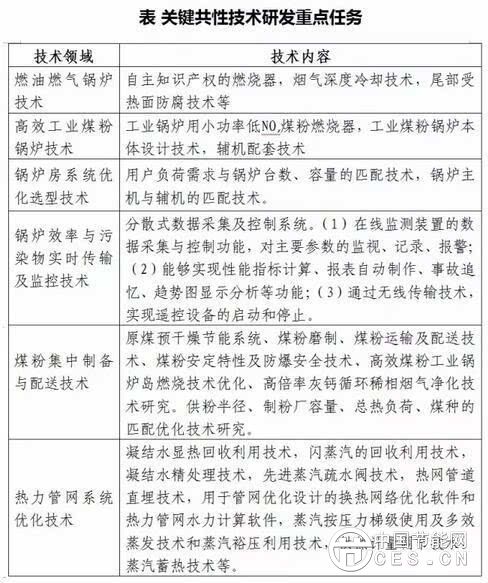 攻克一批关键共性技术。以高效节能环保工业锅炉系统产业联盟、企业技术研发中心为主体,重点研发燃油燃气锅炉燃烧器、高效工业煤粉锅炉、辅机配套、锅炉房系统优化选型、锅炉效率与污染物实时传输及监控、煤粉集中制备与配送、蒸汽管网优化等技术(见表)。