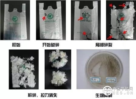 EBP降解母料通过纳米技术制备而成,可均匀分散于生态塑料制成品中,其作用类似于放大镜,通过集聚自然界中的光能、热能,在有氧条件下,通过氧化作用将塑料分子结构中极其稳定的C-C键断开,加氧,从而改变塑料分子结构,改变亲水性,形成含氧低聚物。由于分子键断裂,导致分子量降低,当分子量降低到10000以下时,微生物便开始发生作用,加之亲水性的改变使微生物更加容易附着,从而将其完全降解为水、二氧化碳和土壤有机质。