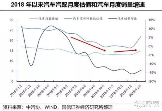 国信证券指出,2018年在政策周期、经济周期、产业周期三端叠加背景下,国内乘用车销量自2018年下半年起下滑,同时下滑幅度逐月增大,截至2019年2月,中汽协统计口径下乘用车销量已经连续8个月下滑,并在2019年1月和2月达到这轮下滑中的增速最低谷。