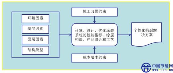 由于保温——涂装工程的使用寿命和抗开裂性能对环境影响的敏感性,因此其抗裂性能必须与特定工程项目具体环境因素相匹配,或者说,必须根据项目的环境因素进行个性化指标设置,才能真正实现抗裂性能与材料成本的优化。环境影响因素匹配技术就是要解决如何根据不同的环境特征设定出保温——涂装系统需要的最佳的抗裂性能指标。