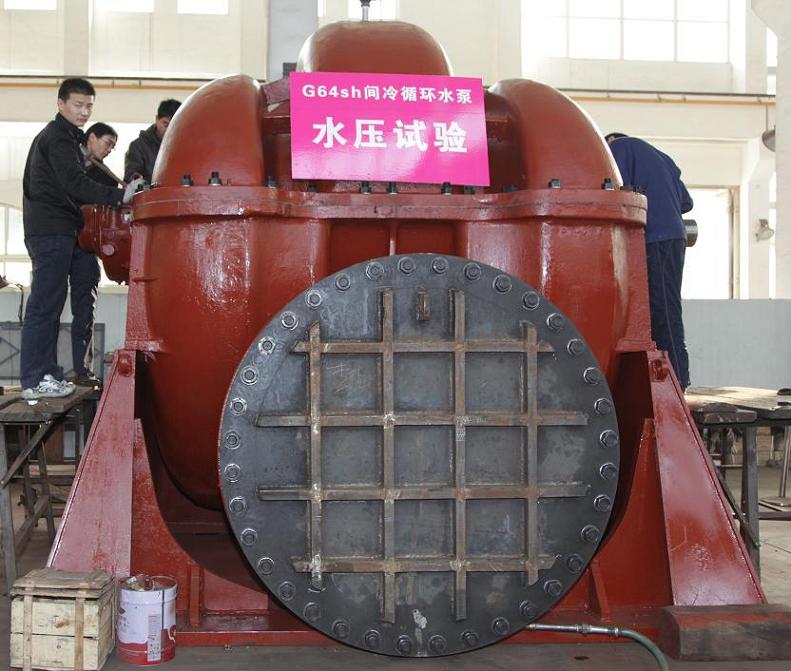 在院领导、研发部和产业等部门的关心支持下,公司全体员工经过历时一年的艰苦努力,克服了设计、铸造、焊接、加工等出现的巨大困难,终于在10月27日完成首台大型间冷循环水泵厂内整泵水压试验,并于10月28日运离公司,驶向西北部电厂。