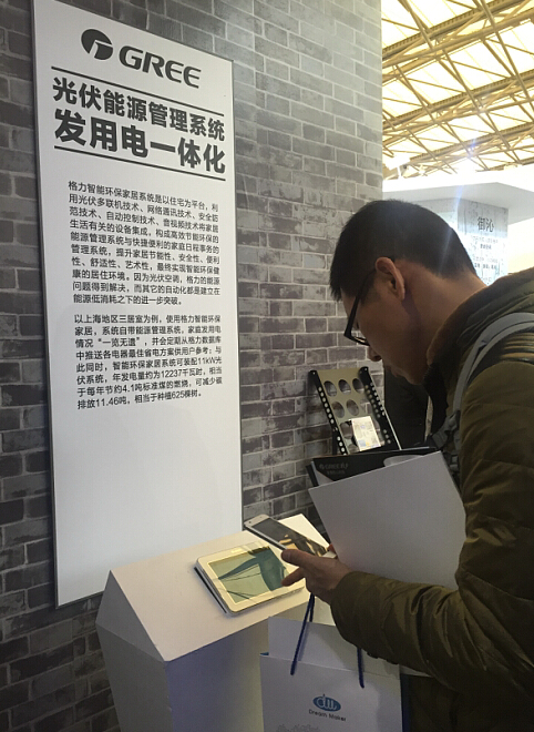 智能环保家居展区是此次格力电器参展上海家博会的关键展区,智能环保家居展区展示了格力光伏多联机、智能新风机、智能空气能热水器、智能窗帘、智能灯具等智能家居系统及产品,与以往不同的是,此次参展是格力首次全面展出基于智能环保家居系统的产品及技术。通过格力所展出的系统及产品,业内专家表示:格力电器此次透过家博会,有意识的公开智能家居产业布局的意图,表明了格力对智能家居产业的布局已经臻于成熟。