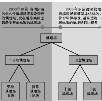 业内专家普遍认为,我国填埋场建设标准和污染防治方面有两个时间节点比较重要:2000年以前,当时所谓的永久性填埋场或者是受控的填埋场,现在看来实际上都是不符合标准的填埋场。按照原建设部的划分标准,2000年以前,基本上是三级、四级的居多。这两类填埋场是一种集中受控的,有环境设施但是不能达标运行。