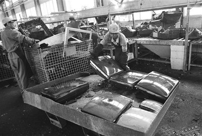 记者在百盛公司看到,公司有生产车间、原料仓库和储存危险品的仓库,生产车间有4条生产线,分类处理废旧洗衣机、电视机、冰箱、空调、电路板等。
