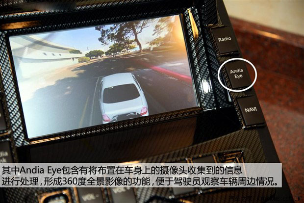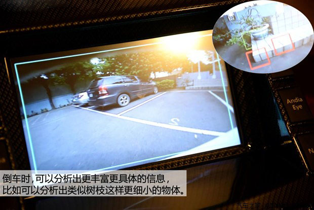 由于播放视频、音乐以及收听收音机等功能与目前大多数车载多媒体系统无异,因此我们体验的重点放在了Andia Eye功能上。它通过对摄像头为主体的传感器收集到的信号进行分析,由此扩展出其他功能。