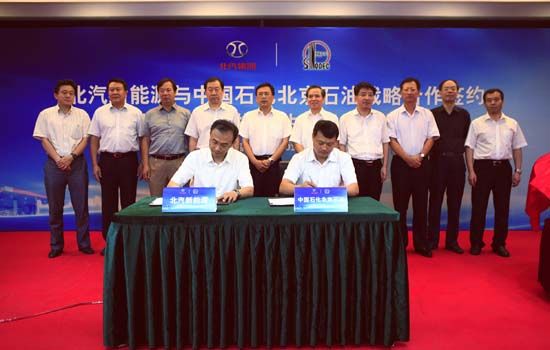 7月3日,在北京市发改委、科委、经信委、交通委、环保局的共同见证下,北汽新能源与北京石油签订战略合作协议,双方合作开展新技术、新产业在企业生产和管理的应用。