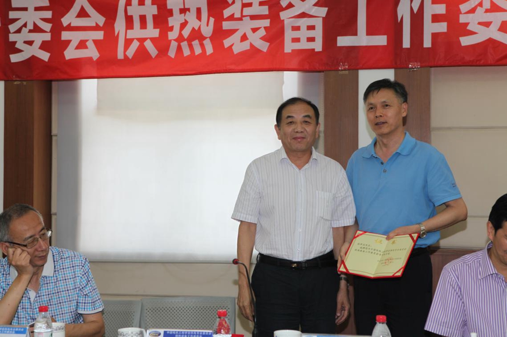热专委会原秘书长郁刚向供热装备委员会新增专家颁发证书,并合影留念。