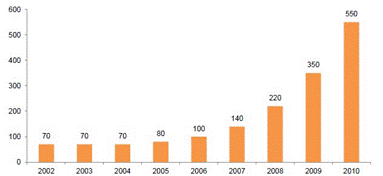 日本服务机器人市场规模呈现爆发性增长趋势(亿日元) (注:图片来源于网络)