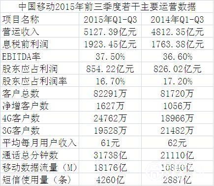 10月20日晚间消息,中国移动在今日公布了截至2015年9月30日的前三季度业绩报告。