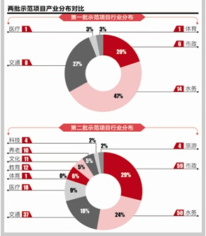 在两批项目中,各地分别上报了120、782个项目,而财政部从中遴选了30、206个,数量和投资金额暴增了7倍、3.7倍,但前后两次的“入选率”基本维持在25%。