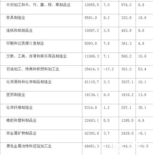 1-9月份,在41个工业大类行业中,30个行业利润总额同比增长,11个行业下降。主要行业利润增长情况:农副食品加工业利润总额同比增长12.7%,纺织业增长7.8%,石油加工、炼焦和核燃料加工业增长53.4%,化学原料和化学制品制造业增长10.1%,通用设备制造业增长0.7%,电气机械和器材制造业增长12.7%,计算机、通信和其他电子设备制造业增长13.5%,电力、热力生产和供应业增长12.3%,煤炭开采和洗选业下降64.4%,石油和天然气开采业下降66.1%,非金属矿物制品业下降8.1%,黑色金属冶炼和压延加工业下降60.5%,有色金属冶炼和压延加工业下降1.9%,专用设备制造业下降5%,汽车制造业下降4.4%。