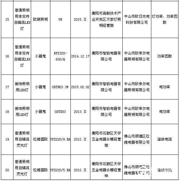 不合格商品存在的主要问题是灯功率、电功率、谐波电流达不到标准要求。