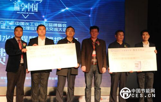 在“赢享中国”慧聪网2015年中国水工业行业品牌盛会颁奖盛典上,中国环境科学学会副秘书长侯雪松和中华环保联合会副秘书长谢玉红为获得“年度影响力企业品牌”的企业颁发荣誉证书。