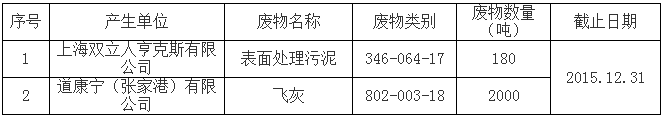 浙江特力再生资源有限公司是一家专门从事表面处理废物、含铜废物、含镍废物等危险废物进行收集、贮存、利用的企业,年处置能力为45000吨。根据该公司给浙江省环境保护厅提交的申请报告:截止2015年10月底,已通过审批核准数量为33424吨,目前尚余处置能力为11576吨。该公司日常运行正常,有能力对上述单位的固体废物进行安全处置利用。