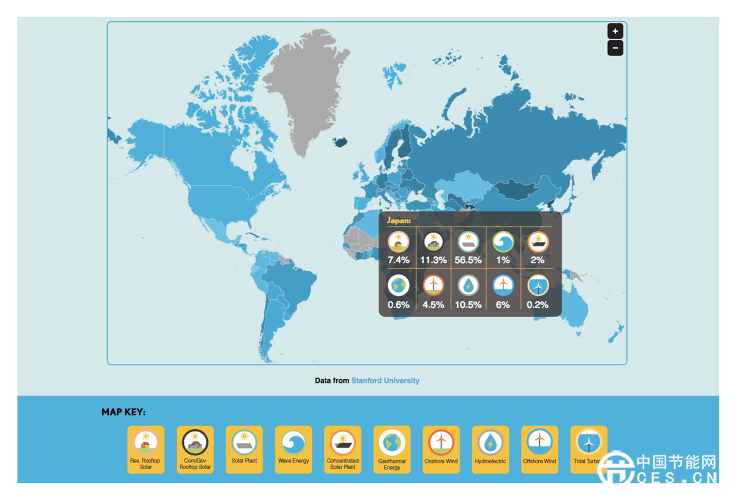 马克˙Z˙雅各布森(Mark Z.Jacobson)是斯坦福大学大气能源研究项目的主管,他的团队与加州大学的研究人员一起分析了139个国家的能源蓝图:“这些能源计划图表可以表明,无论是在技术层面还是经济层面上,改变不同国家的能源结构是可行的。”