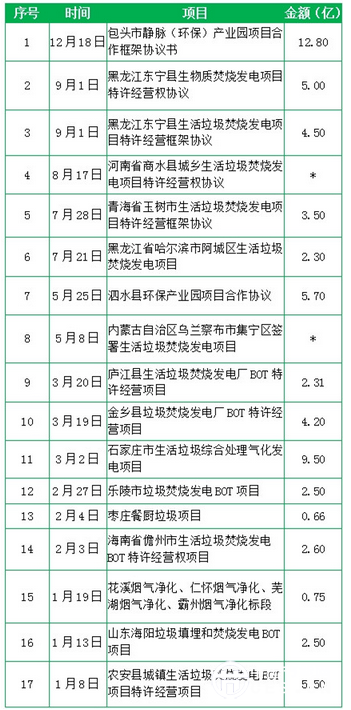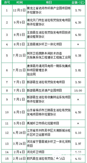 据统计显示,盛运环保今年新签订单17个,订单总金额逾64亿人民币。从项目时间分布来看大多在今年上半年,从项目类型来看基本均为生活垃圾焚烧发电和餐厨垃圾无害化处理项目。