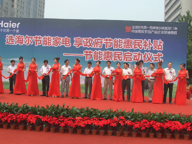 5月16日,国务院总理温家宝16日主持召开国务院常务会议,讨论通过《国家基本公共服务体系“十二五”规划》,研究确定促进节能家电等产品消费的政策措施;国家安排财政补贴265亿,启动推广符合节能标准的空调、平板电视、电冰箱、洗衣机和热水器,推广期限暂定为一年。6月1日,家电节能补贴新政在全国实施开展,目前空调和彩电两大产品节能补贴细则和补贴型号已经公布,海尔空调入围节能惠民工程变频空调型号达332个,居各空调品牌榜首;海尔彩电入围节能惠民工程彩电型号达339款,高居各彩电品牌榜首。