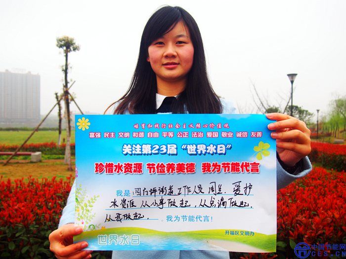 湖南丽臣实业、长沙四方加油城等多家驻街企业均派出代表来到现场为节能代言,宣誓将从生产环节中保护水资源,抵制任何污染水资源的企业行为;而社区居民、志愿者们则纷纷从生活点滴出发,写出节能宣言,发挥带头作用,感染身边人共同保护水资源。