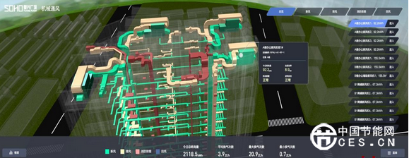 在空调与机械通风系统中,用户能够直观了解建筑内部风管道的布局,及相关设备的能耗信息,同时也能实时监控单个设备的详细运行参数。