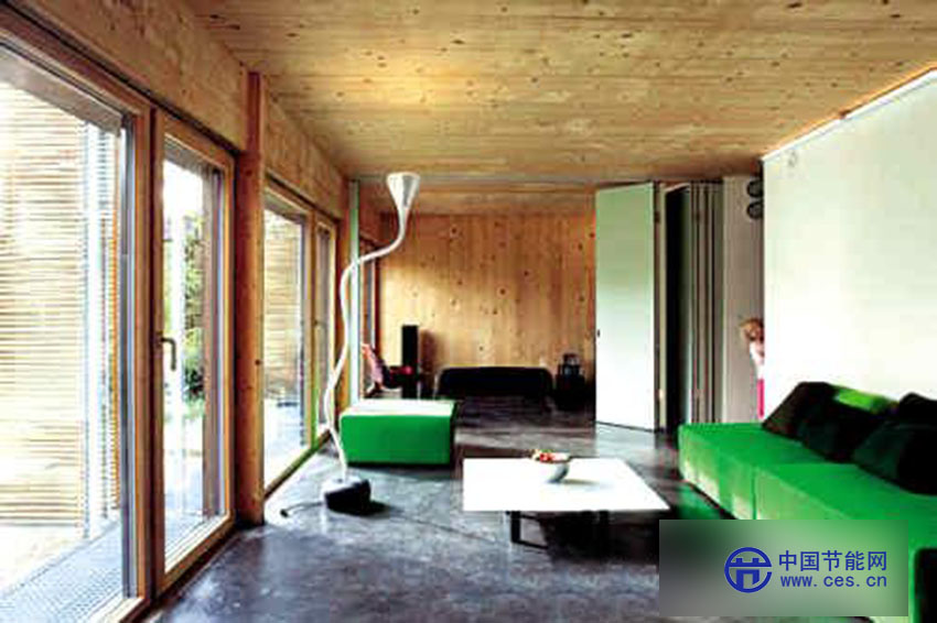 装在屋顶的太阳能光电板可以提供2695千瓦时/年的能量。地基板是这个建筑项目中唯一的混凝土部分,整个结构是由可组装的实木板材制作而成,这些板材都是在工厂预制的,可直接运到工地现场进行组装。