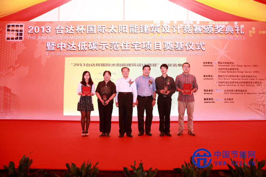 以“阳光与建筑再生”为主题,由台达环境与教育基金会冠名赞助的“2013台达杯国际太阳能建筑设计竞赛”, 9月10日于江苏吴江举行竞赛颁奖典礼,由北京交通大学创作的“时光容器”和哈尔滨工业大学创作的“驻波•逐日”获得本届竞赛的一等奖。国务院参事、中国可再生能源学会理事长石定寰、台达环境与教育基金会董事长郑崇华、台达董事长海英俊、中国建筑设计研究院(集团)院长修龙、苏州市副市长徐明、吴江区区委副书记、代区长沈国芳等嘉宾出席了颁奖仪式。