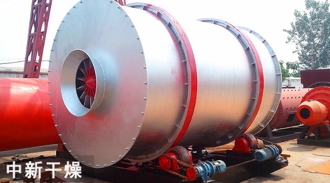 物料由供料装置进入回转滚筒的内层,实现顺流烘干,物料在内层的抄板下不断抄起、套筒烘干机落呈螺旋行进式实现热交换,物料移动至内层的另一端进入中层,进行逆流烘干,物料在中层不断地被反复扬进,呈进两步退一步的行进方式,物料在中层既充分吸收内层滚筒散发的热量,又吸收中层滚筒的热量,同时又延长了干燥时间,物料在此达到最佳干燥状态。物料行至中层另一端而落入外层,物料在外层滚筒内呈矩形多回路方式行进,达到干燥效果的物料在热风作用下快速行进排出滚筒,没有达到干燥效果的湿物料因自重而不能快速行进,物料在此矩形抄板内进行充分干燥,由此完成干燥目的。