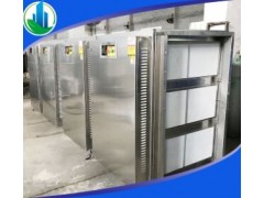 3)恶臭/工业废气利用排风设备引入到本净化设备后,净化设备运用高能UV紫外线光束及臭氧对工业废气进行协同分解氧化反应,使工业废气物质其降解转化成低分子化合物、水和二氧化碳,再通过排风管道排出室外。