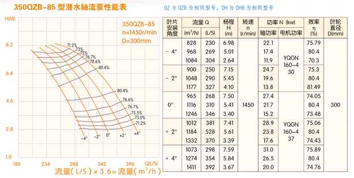 轴流泵流量:潜水轴流泵:驱动水泵的电动机是干式全封闭潜水三相异步电动机,可以长期浸入水中运行,具有传统机组一系列无可比拟的优点。潜水电机采用双重或三重机械密封,F级(耐温155。C)绝缘,防护等级为IP68(IEC)。在水力模型方面,我们吸收了国内外同类产品的优点,采用国际上先进的变环量、变轴面速度升力法,独立设计的高效节能、抗汽蚀性能好的新型水力发电模型。可靠性高,且与传统水泵具有互换性,便于用户选型、使用。泵体材质可以根据客户需要选择不同材质。