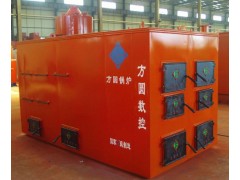 打破了常规的结构设计理念, 该产品是四三程结构设计,均由气化燃烬室和对流换热室两大部分构成,在气化室设有超大储煤仓,储煤仓在煤层在贫氧状态下,使煤炭迅速裂解、气化,产生的一氧化碳等可燃性气体,经送风装置供给的空气助燃,燃烧部分包括主燃烧室,采用了加涡流旋风燃烧技术,锅炉工作时辅助燃烧室温度可以达到1200℃。在高温下将煤中的焦油和碳黑燃尽,并将煤中的硫通过高温化合成盐类物质,实现了不用附加其他除尘脱硫装置就能达到消烟、除尘、脱硫的效果。高温烟气在引风机的作用下180度折返,经二回程和三回程烟管,烟气在螺纹烟管内产生旋流,对流传热,烟气最终经脱硫除尘系统净化过滤后,排向大气,排烟温度在180℃以下。