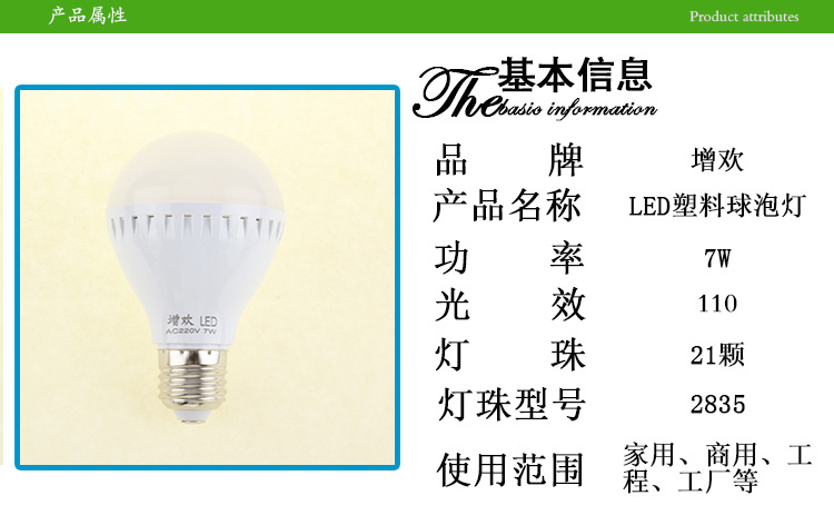 曾欢LED灯泡 7WE27螺口LED塑料球泡灯