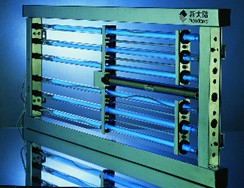 产品由配电基座和若干支低压高强无臭氧紫外C灯组成。可安装在风道、空调换热盘管表面、过滤器表面等位置。对表面繁殖之微生物以及气流携带至致病菌进行直接杀灭,保持空调循环空气清洁、去除异味、保持空调系统高效运行。