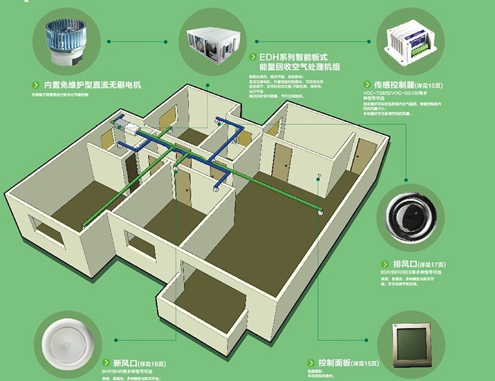 控制系统:通过空气品质传感器根据室内的空气质量实现智能化自动风量调节。