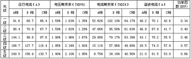 从谐波柱状分布图可知可控硅恒流调光器谐波电流的频谱范围很宽,除3、5、7、9、11 和13 次以外,还存在15、17、19、25、29、31 和34 次等更高次谐波。电容柜切除情况下的数据汇总见表1