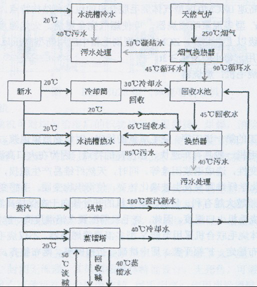 根据各机台用水温度要求和可回收情况,对用水、用能进行分类统计,汇总数据如下: