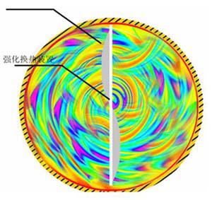 在换热管内装置的转动部分导流下,冷却水呈螺旋线流动。连续自转和不断振摆,侧刃对近管壁的边界滞流层产生有效的扰动,变层流为广泛紊流,从而使该装置有一定的传热强化作用。经部分电厂使用证明,该装置节能增效的经济效益十分显著。